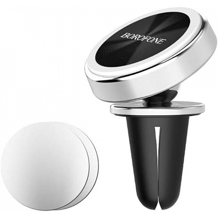 מחזיק טלפון מגנטי Borofone BH6 Platinum – ליציאת אוויר (כסוף), סיבוב אוניברסלי