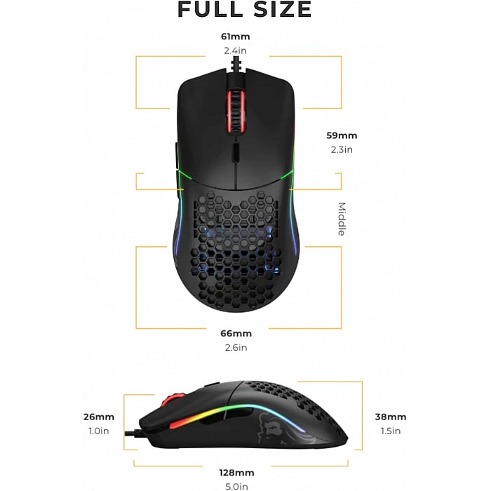 - בנוי ממעטפת HoneyComb להשגת משקל קל-נוצה תוך שמירה על חוזקו העמיד ביותר. בקושי תרגישו את החורים במהלך המשחק, אך הם מספקים אוורור בכדי לשמור על כפות הידיים קרירות ורעננות. ניקוי ה- Model O הוא קל, פשוט השתמשו בכל מיכל אוויר כדי לשמור על העכבר כחדש